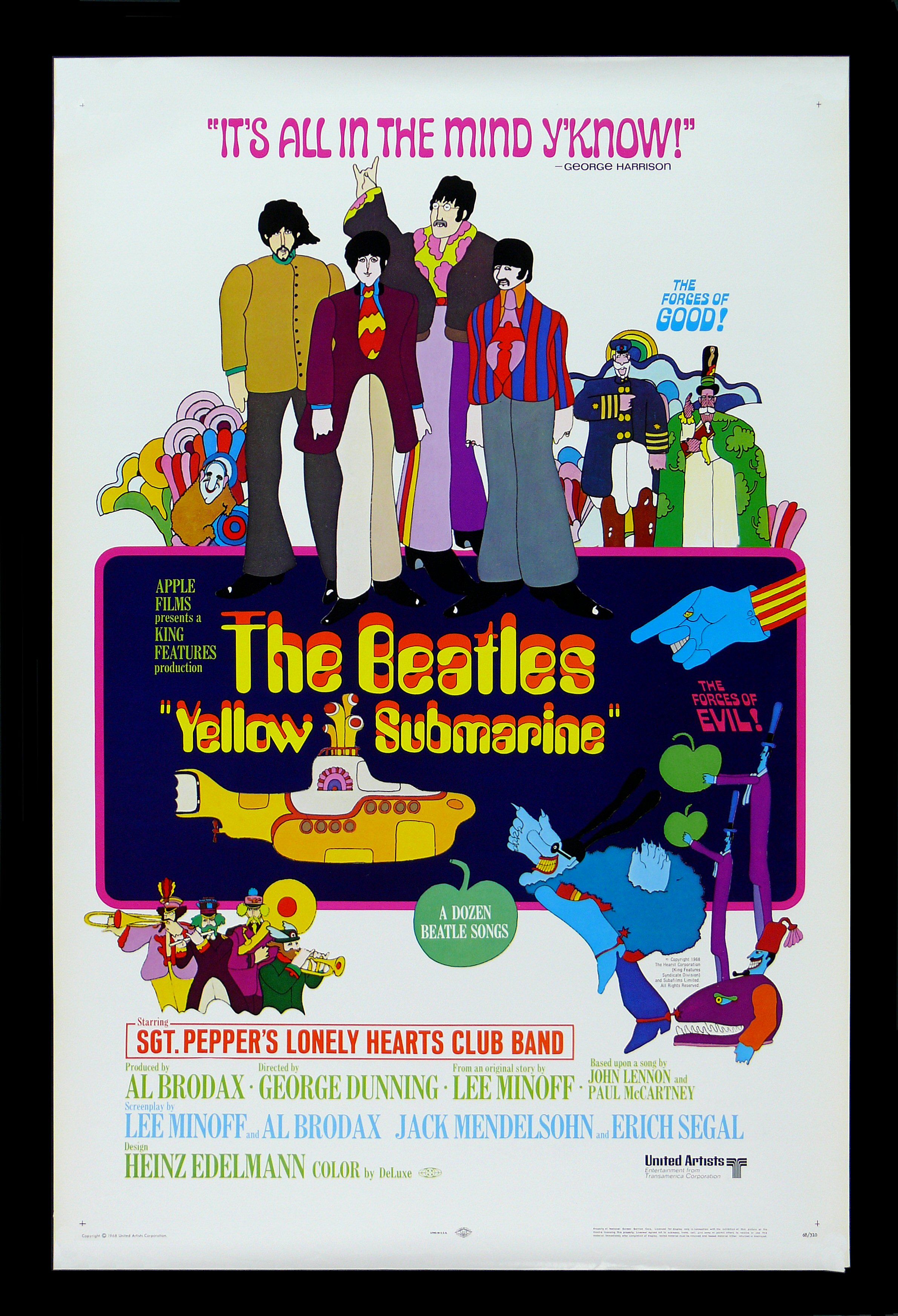 No auge de sua popularidade, o grupo britânico The Beatles fez este desenho sobre uma terra dominada pelos malvados Blue Meanies. Eles são recrutados para devolver a alegria e a música para o mundo fantasioso, partindo em uma viagem incrível. Um filme de animação psicodélica que abusa das cores e de canções famosas da banda.